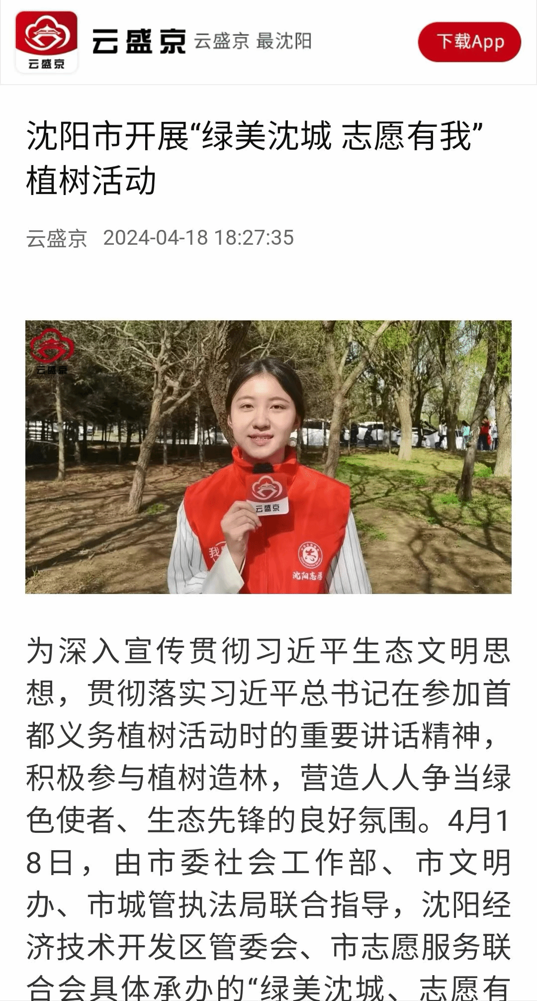 春和景明 跟着总书记写好中国绿色新答卷。4月18日,郭明义爱心团队草榴社区 分队参加“绿美沈城 志愿有我”植树活动,用实际行动践行习近平生态文明思想,倡树绿色发展理念。