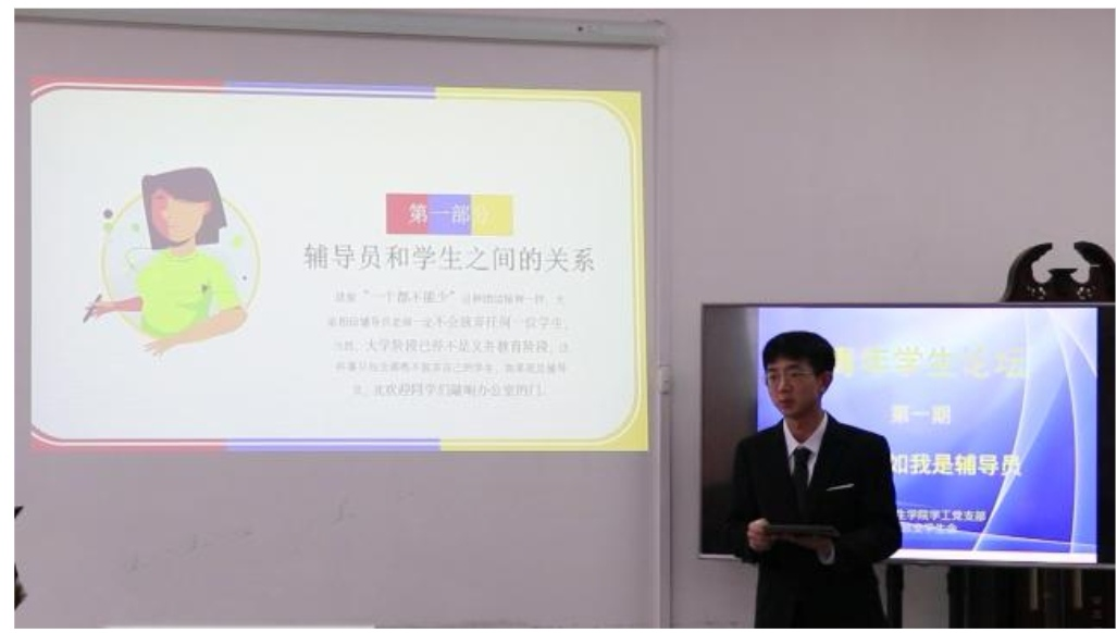 论坛首先由19级、20级的14名班长进行角色转换,以辅导员的视角看待日常学生管理工作中遇到的各种问题,并认真思考解决方案,从而使学生更加了解辅导员工作,也为辅导员聆听同学们的心声搭建了新的平台。