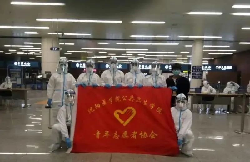 伴着融融的暖阳,早晨八点他们准时坐班车从总关出发,前往沈阳桃仙机场。在到达机场后,他们迅速穿上防护服,戴好口罩、手套和鞋套,根据当天的情况,进行工作任务。第一次穿上防护服的不适应,闷热的环境,高强度的工作,长时间佩戴口罩而出现很深的压痕,长时间站立导致的身体不适,由于物资紧张而长时间佩戴带有滑石粉的一次性手套导致的过敏症状,这种种看似无法让人承受的困难,在他们面前虽也是高山,但却没有让我们的同学们退缩,他们没有一个人喊累,更没有一个人后退,他们以行动肩负起青年的责任,书写着沈医人的担当。