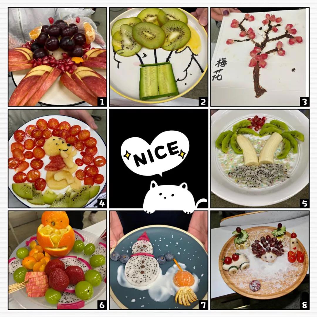绚丽多彩的水果拼盘设计大赛提高了同学们的创新能力、审美能力、艺术素养和动手能力,丰富了同学们的大学生活,活跃了校园文化气氛。同时在小组协作中,同学们提升了团队精神和合作技巧,增强了自信、自强、自立意识。