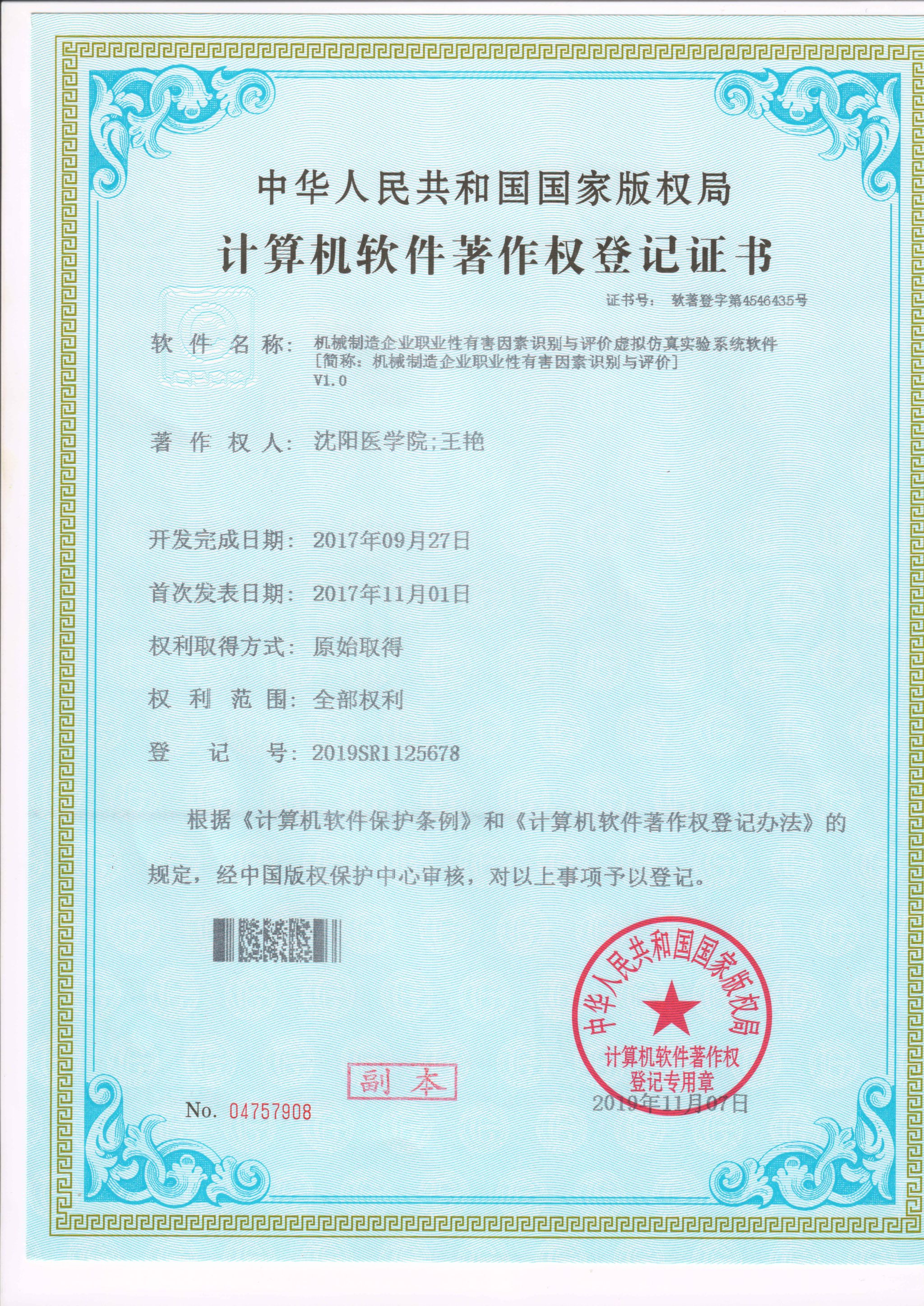 职业卫生与职业医学教研室,现有专任教师4人,其中教授2人,讲师2人。拥有辽宁省教学名师1人,辽宁省优秀教师1人。近五年来,获教育部教改项目2项,省级教改项目4项,申请软件著作权1项,主要承担《职业卫生与职业医学》、《空气理化检验》、《预防医学》、《职业危害与健康》、《生物信息学》和《放射卫生学》等课程的授课任务,负责的课程中《职业卫生与职业医学》和《空气理化检验》为省级一流课程。职业卫生与职业医学教研室现有硕士研究生导师2人,近五年来,主持国家自然科学基金课题1项,省级课题3项,沈阳市高层次创新人才计划1项,发表国内外期刊论文十余篇。